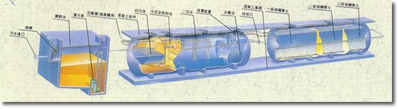(1)初沉池:地埋式生活污水处理设备的初沉池为竖流式沉淀池,污水在沉淀池的上升流速为0.6-0.7毫米/秒,沉淀下来的污泥用空气提至污泥池。(注:WSZ-A O.5-5m3/h不设初沉池)